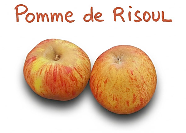 Epiderme : peau à fond jaune-vert avec des stries rouges, cavité pédonculaire de couleur gris fauve,