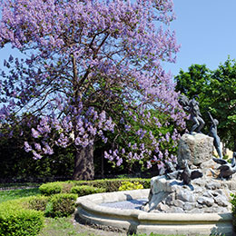 Liste des variétés de Paulownia Paulownia tomentosa ou imperialis ou paulownia impérial : fleur bleue parfumé en grappe, floraison vars fin avril-mai, grande feuille, grand developpement, hauteur adulte 15 à 20m, commander